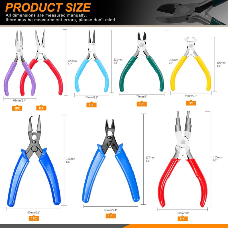 - 【 PRODUCT DIMENSIONS 】-----The jewelry pliers measures approximately 4 inches, 5 inches and 6 inches in length. Perfect to store in tool kits or small baskets, easy to carry without taking up too much space.