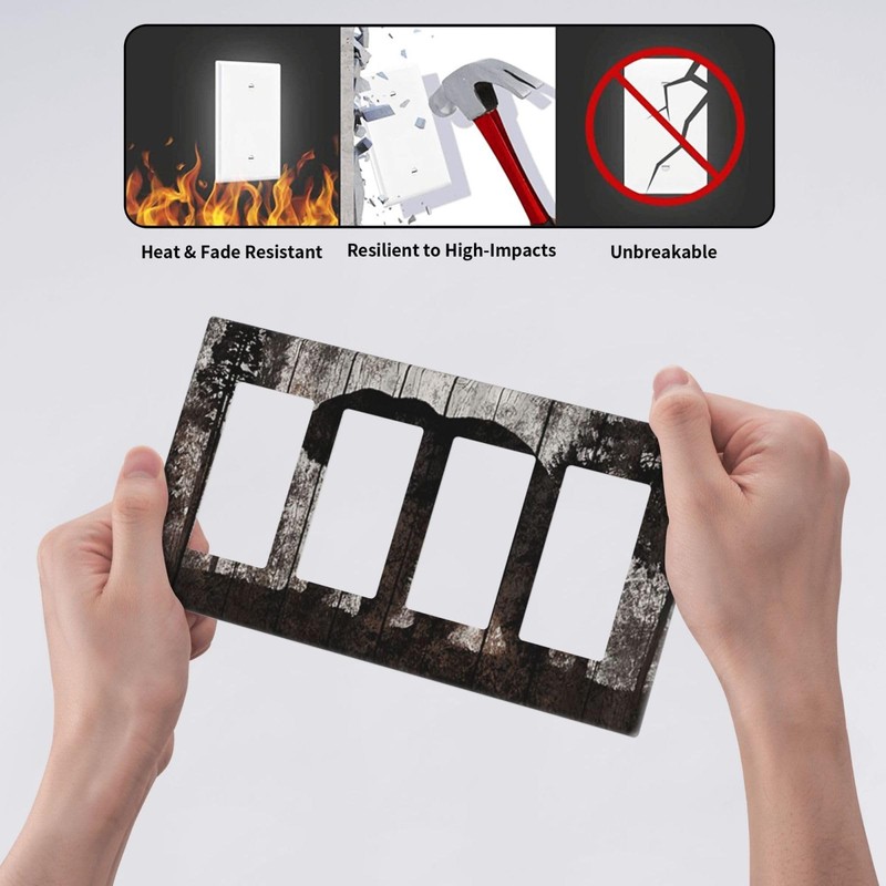 Rustic Bear Wood Board Country Quad Rocker Light Switch Cover 4 Gang Decora Wall Plate Decorative Switchplate GFCI Electrical Faceplate for Kitchen Bathroom Home Decor
