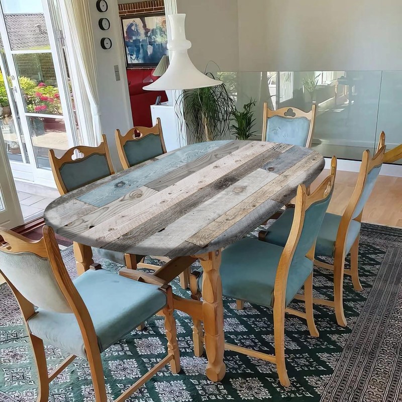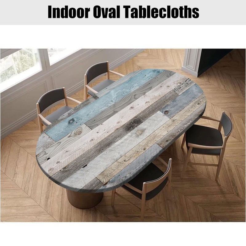 - 1️⃣Perfect Size:Includes 1 polyester Rustic Board Farmhouse Wood Pattern Print fitted table cover for Oval table, 60*42 inches . The Oval elastic edge design can be easily installed around any Oval table any table with the specified sizing.