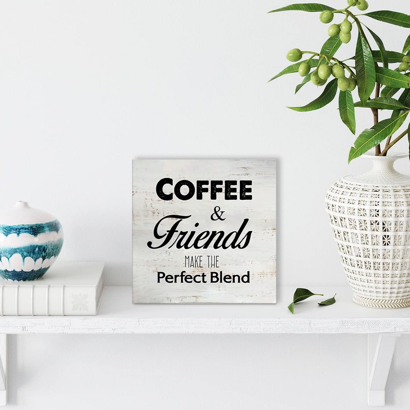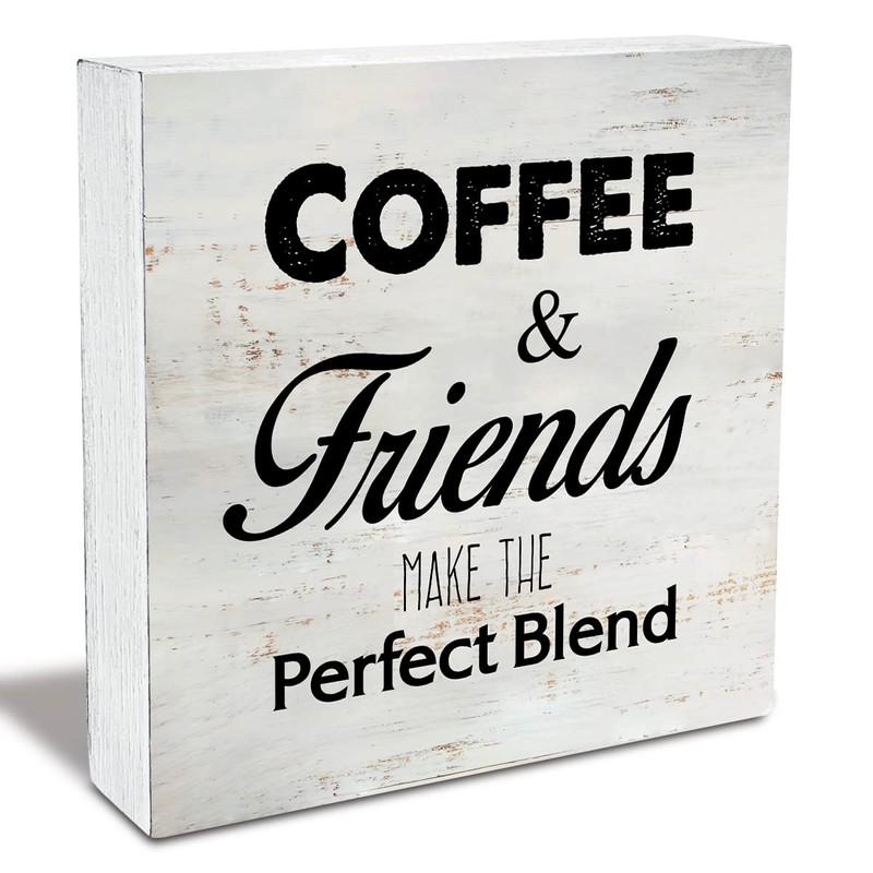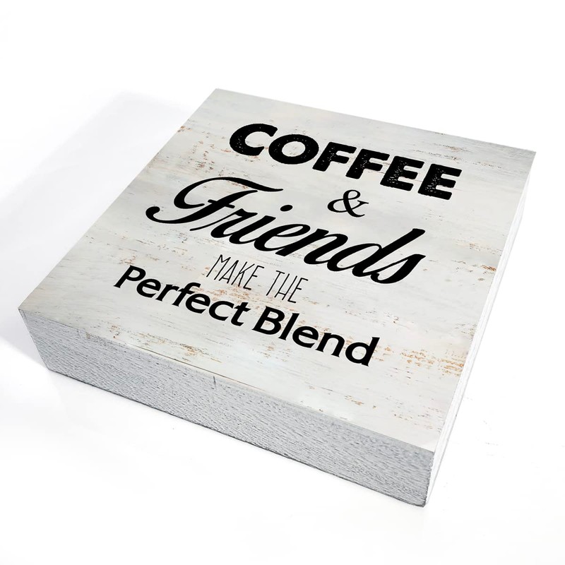 Rustic Coffee Friend Wood Box Sign Coffee & Friends Make the Perfect Blend Wooden Box Sign Farmhouse Home Kitchen Desk Shelf Decor (5 X 5 Inch)
