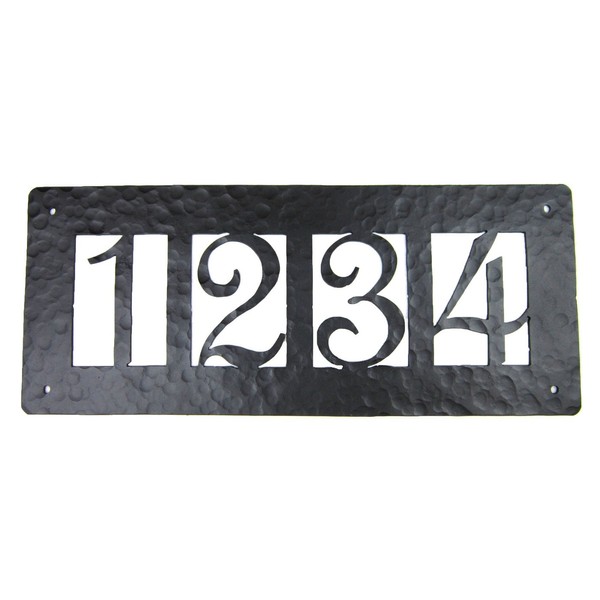 Rustic Custom Hammered Wrought Iron Address Plaque Horizontal APH24 (4number) (Black)