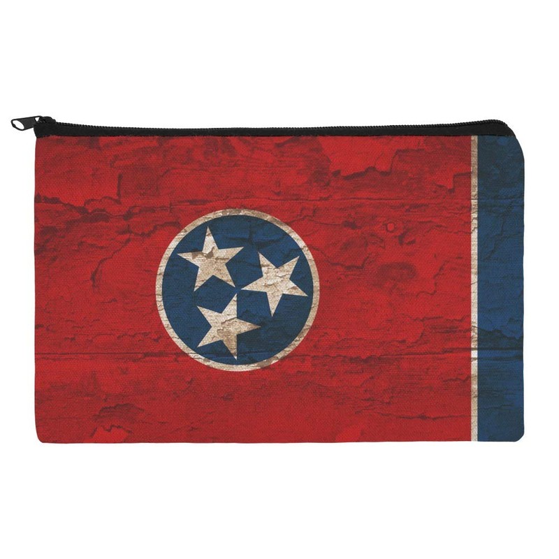 Rustic Distressed Tennessee State Flag Makeup Cosmetic Bag Organizer Pouch
