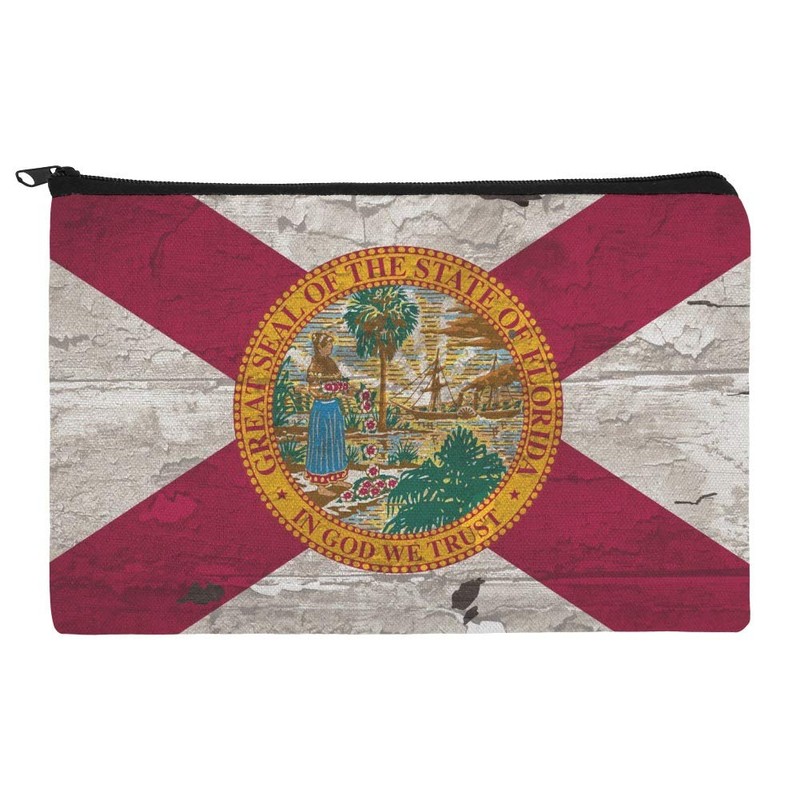 Rustic Florida State Flag Distressed USA Makeup Cosmetic Bag Organizer Pouch
