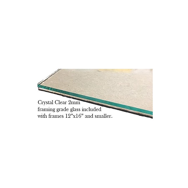 • Frame Sizes 12"x16" and smaller include: Crystal Clear framing glass, rigid cardboard backing and sawtooth hanger for horizontal or vertical display (some assembly required).