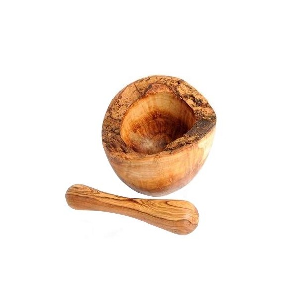 Rustic Olive Wood Pestle & Mortar +/- 14cm