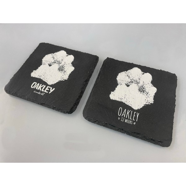 Rustic Slate Custom Coasters- Set of two - Includes Non-slip pads - Ideal for Kitchen, Table, Home, Office, Gift, 100 x 100mm