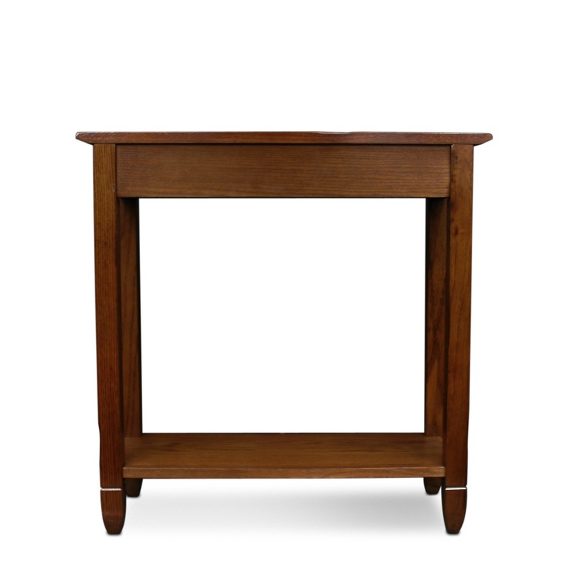 The Leick rustic Slate console table with natural stone Details is a perfect choice to greet your guests in the Entry way or place behind your sofa. Solid wood construction and rich hand applied multi step rustic oak finish will inspire your guests to take notice. Display a favorite decor item on the lower shelf. Add the matching end tables and coffee table for a complete living room solution.