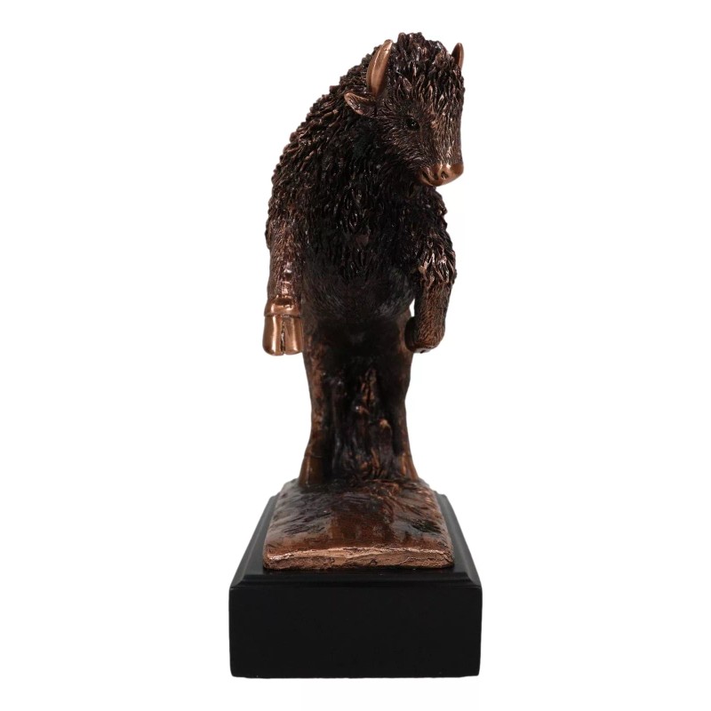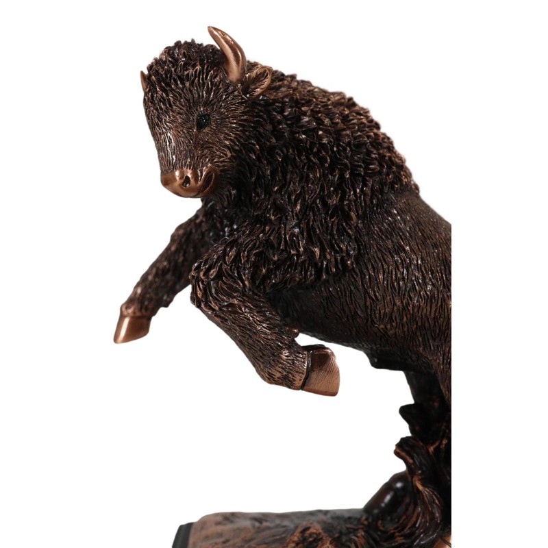 • Animal sculptures bring rustic, spiritual and nature's charm to your decore setup. We bring you these animal features in several different species, masterfully sculpted to resemble their real life counterparts. This sculpture showcases a fierce bison prancing on its rear legs. They are perfect for you desks, countertops, shelves or what have you!