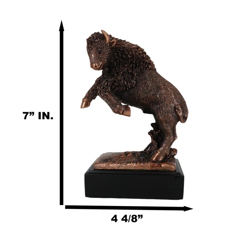 • This American Bison Sculpture is 6.5" tall (With The Base), 4.5" long and 2.5" deep approximately. The base measurements are 1"H, 4"W and 2.5"D. It weighs about 1.25 pounds.