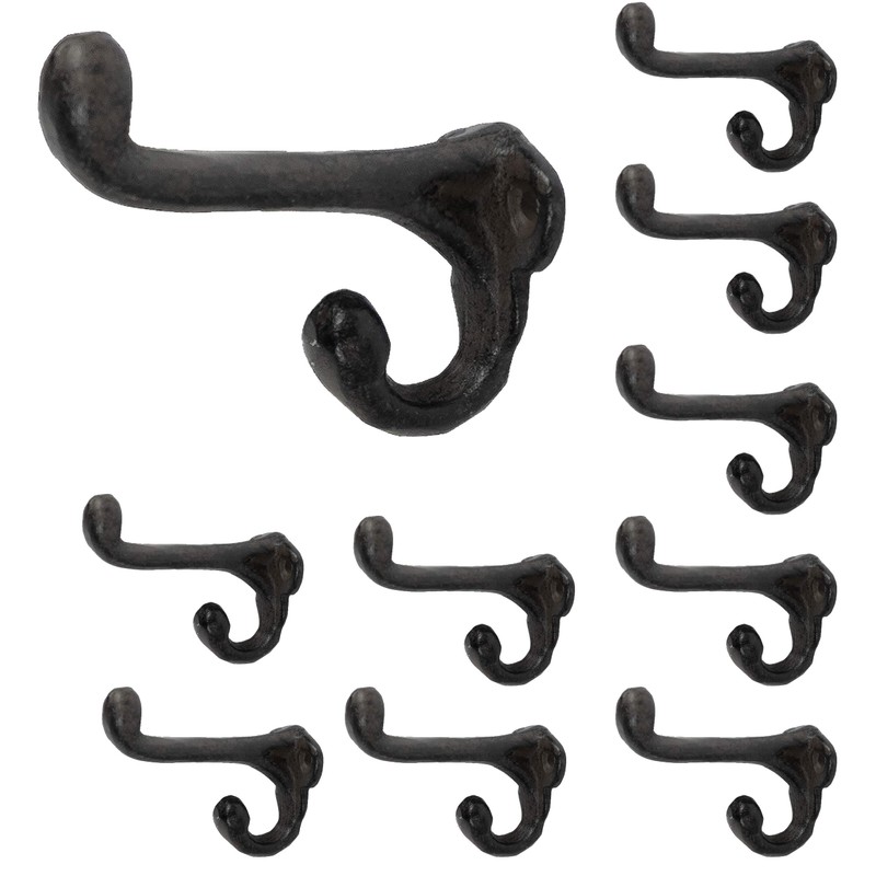 Rustic State Clark Wall Mount Cast Iron Hooks Coat Towel Bag Hat Hanger Multiuse Entryway Railroad Spike Rack Black Set of 10