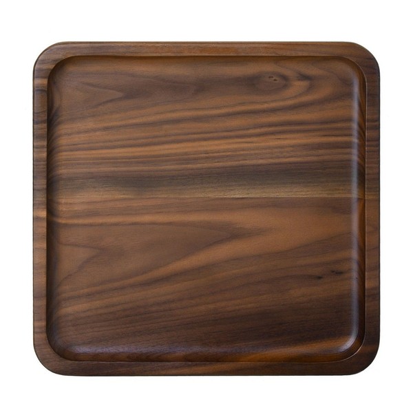 Rustic Walnut Wooden Tray Solid Wood Serving Tray Square Rectangle Platter Tea Tray Coffee Table Tray (Square Large (9 x 9 inch))