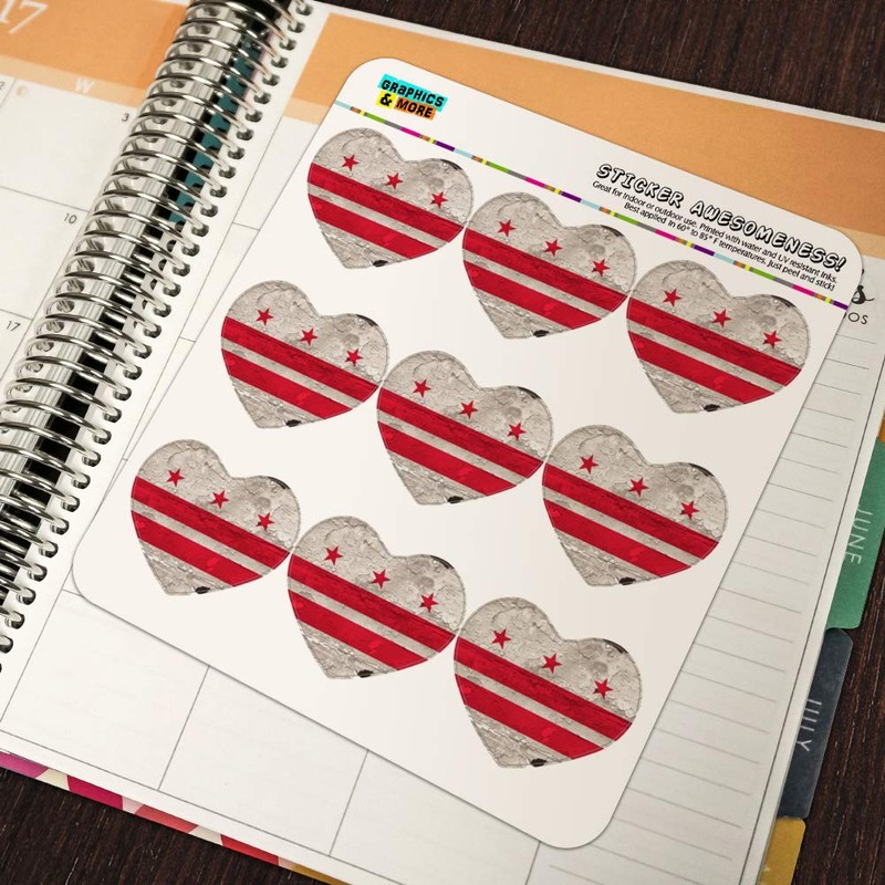 Rustic Washington DC District of Columbia State Flag Distressed USA Heart Shaped Planner Calendar Scrapbook Craft Stickers