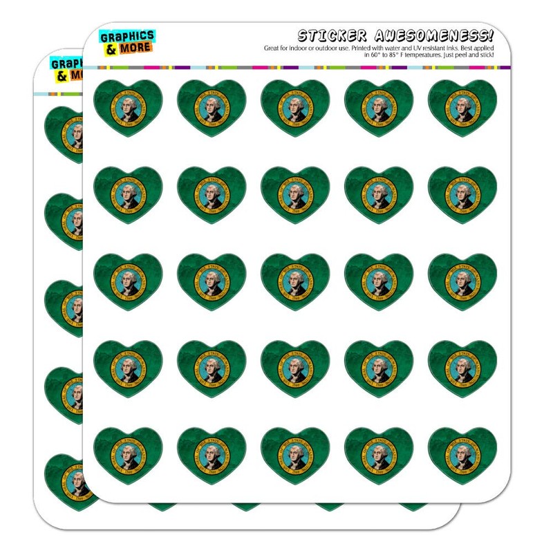 Rustic Washington State Flag Distressed USA Heart Shaped Planner Calendar Scrapbook Craft Stickers