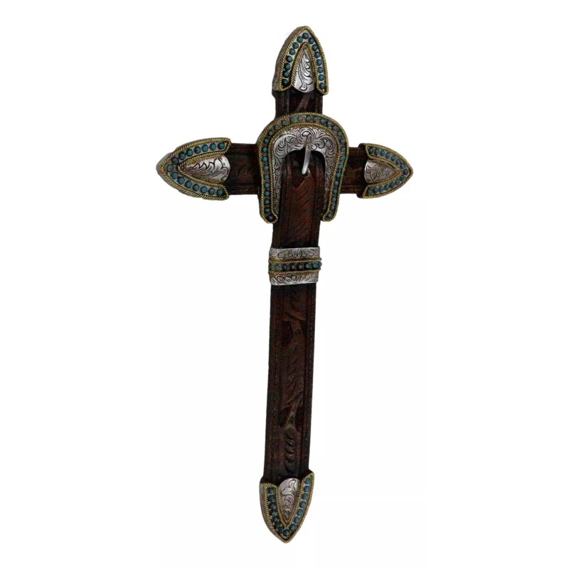 • This Cowboy Belt And Buckle Wall Cross figurine is made of designer composite resin, hand painted and polished. Color Tone may vary slightly from photos.