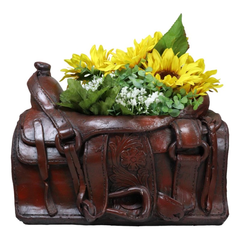 • Add some flair to your home with this awesome vase/tabletop accent. Intricately detailed, the horse saddle features faux leather finishing with a rugged appeal! Use it as a vase for your plants/flowers, or as planters. The possibilities are endless when you put your Wild Wild West imagination to work!