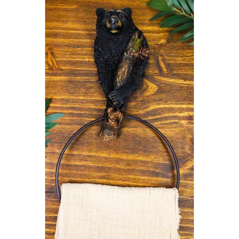Ebros Rustic Western Forest Black Bear Holding Pinecone Branch Hand Towel Holder Ring