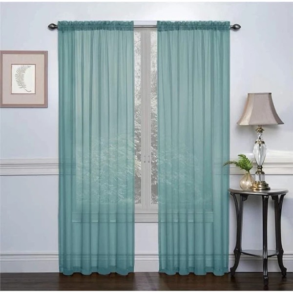 RUTHYS TEXTILE 2 Panels Sheer Curtains Voile Window Treatment 54 x 84 -Color turquoise