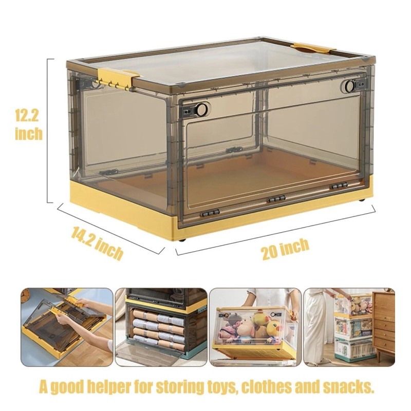 【Large Storage Capacity】The volume of this storage box is 56 liters. The size of the storage box is 20"Lx14"Wx12"H when the storage box is unfolded. The folding storage bins is stable enough to bear 50kg weight, transparent box, easy to choose what you need