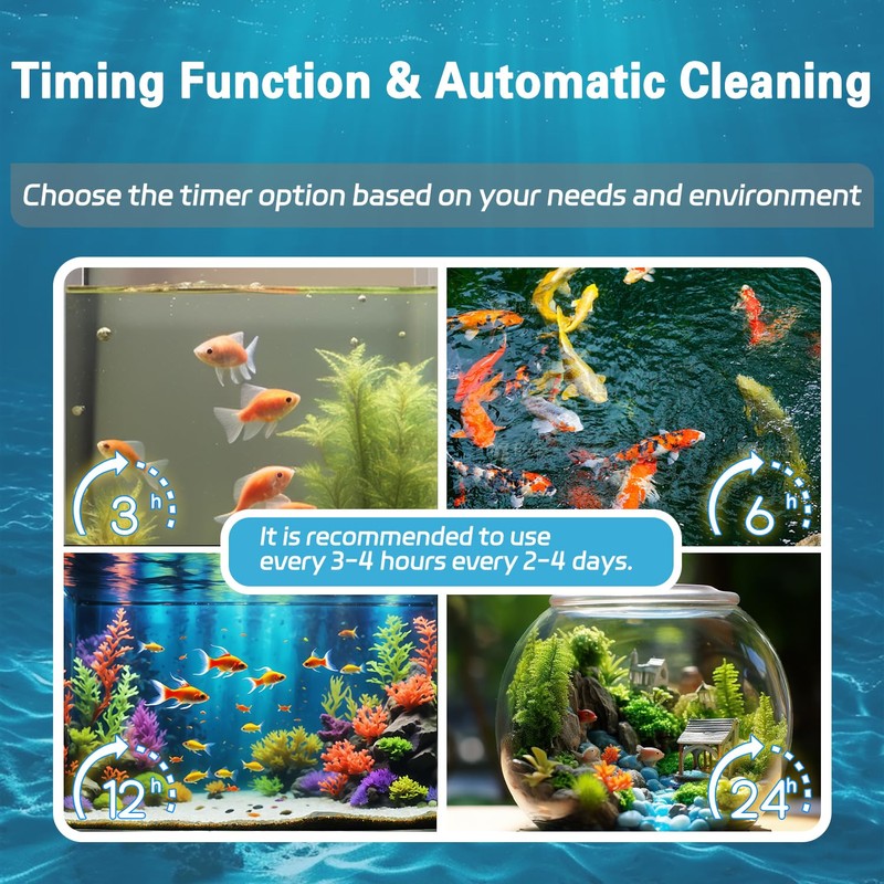 - 🐟【 Timer Function 】- The upgraded version comes with a timer (3h, 6h, 12h, 24h), making the entire cleaning process easier than ever. It is recommended to use it every 3-4 hours every 2-4 days. The bulbs are waterproof, and the plugs and timers should be kept away from water sources.
