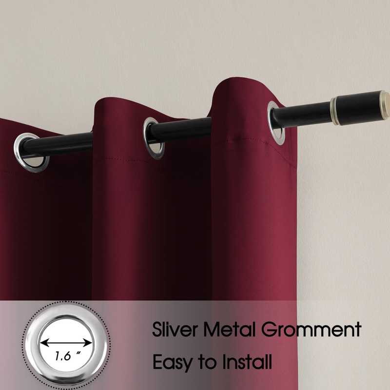 Rutterllow Blackout Curtains for Bedroom, Room Darkening Window Drapes 2 Panels for Living Room, Grommet Top (52x54 Inch, Burgundy Red)