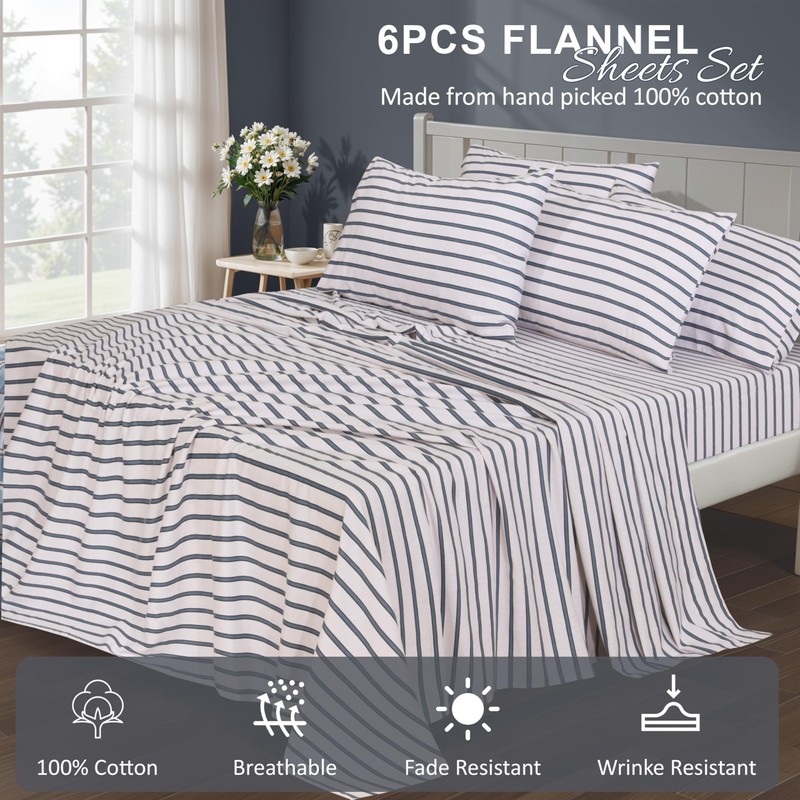 - Product Insights : Our 100% Cotton Flannel Sheets, made with 170 GSM fabric, feature a double brushed finish for a velvety soft feel. Our Bed Sheets Set provides exceptionalluxurious sleep experience while enhancing your bed's comfort and lasting beauty.