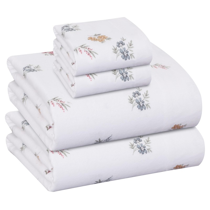 RUVANTI Organic Flannel Sheets King Size - 100% Cotton Double Brushed Bed Sheet Set - Deep Pocket 16 Inches - All Seasons Breathable, Extra Soft, Warm & Cozy - 4 Pieces - Floral