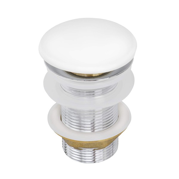 Ruvati White Ceramic Top Push Pop-up Drain for Bathroom Sinks Without Overflow- RVA5102WH