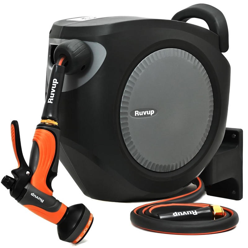 - Smart Locking System: The Ruvup wall mounted hose reel is designed for convenience and ease of use. The garden hose reel lock and auto rewind system ensures secure, stability and lock the hose reel in any position effortlessly, eliminating the need to wrestle with tangled hoses or kinks.