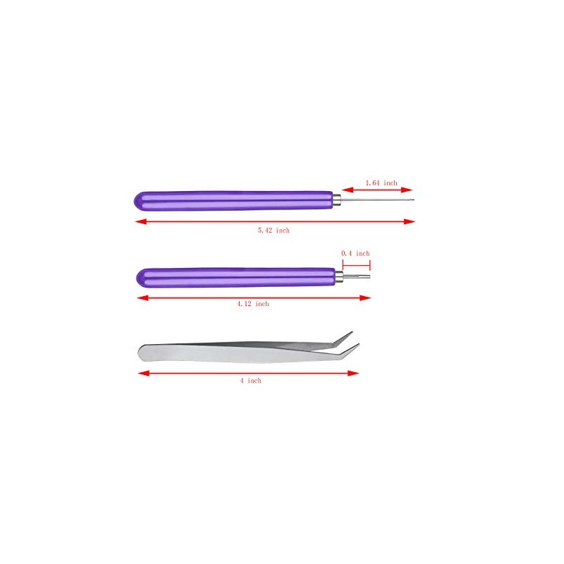 Size: 4 inch (tweezers); 4.13(slotted pen); 5.42 inch (needle tool)