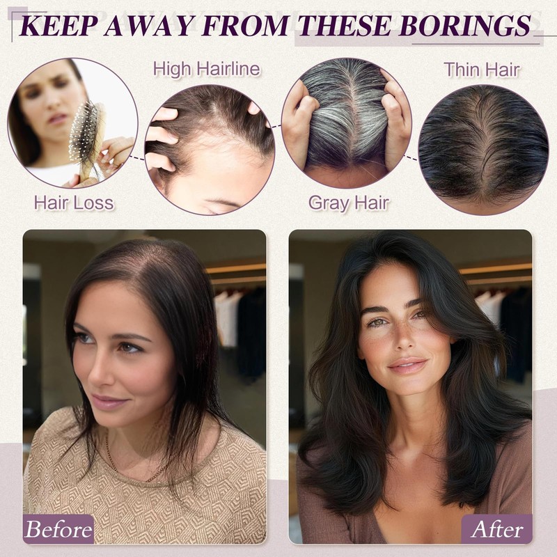 • 【Natürlich und Realistisch】 Mit seinem flexiblen, voluminösen ansatz und den natürlichen haarnähten passt sich der haartopper perfekt an ihr haar an und sorgt für einen realistischen look, der praktisch nicht zu erkennen ist. Niemand wird wissen, dass sie einen topper tragen - es wird einfach wie ihr eigenes haar aussehen.