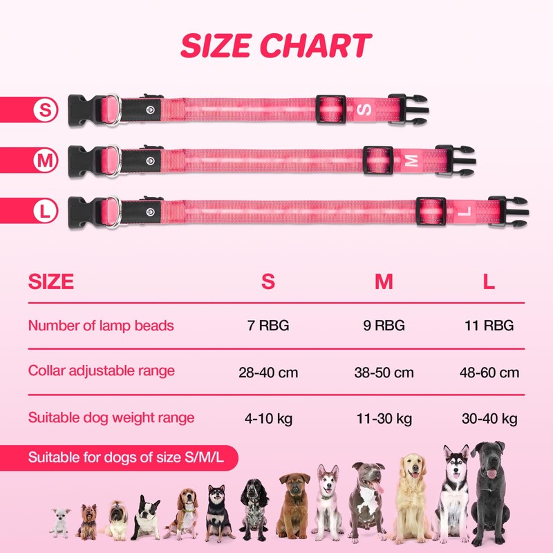 RUXAN Light Up Dog Collar,Dog Lights for Night Walking,LED Collars Waterproof,Glow Dog Collars Rechargeable,Glow in The Dark Dog Collar,Dog Collars Light for Small,Medium,Large Dogs (Medium,Pink)
