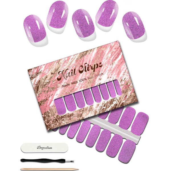 ruyeefam Nail Polish Strips, 32 Pcs Glitter Gel Nail Stickers, Nail Stickers, Gel Nail Strips, No UV Light Needed Nail Wraps, Easy to Use&Remove, Long Lasting, Salon Quality (Gradient Pink Violet)