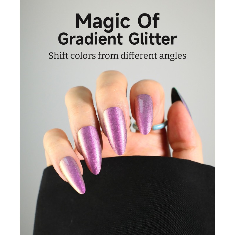 - [DESIGN]: Experience the magic of gradient glitter with our nail stickers, which shift colors from different angles. The dynamic gradient effect creates a mesmerizing sparkle that transforms with every movement, providing a unique and captivating look that stands out from every perspective