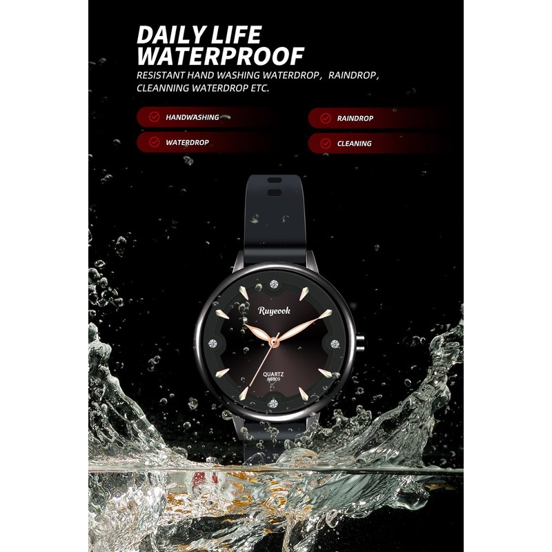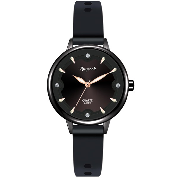 RUYEOOK Ladies Quartz Nurse Watch, Silicone/Mesh Band, Crystal Dial Markers, Analog Waterproof Bracelet Dress Watch for Woman (A8609-black)