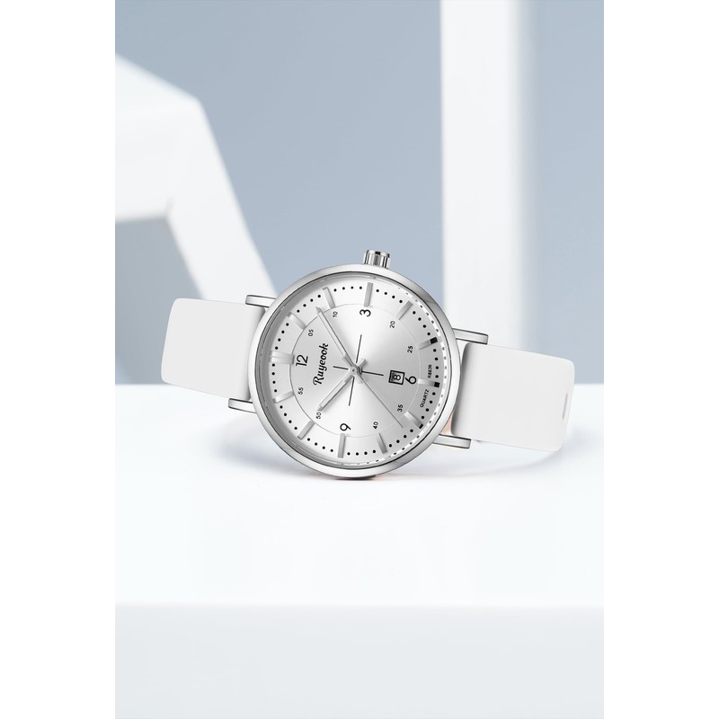 RUYEOOK Quartz Analog Watch,Silicone Band, Calendar Date Display, Water Resistant, Watch for Women Nurses Female Nursing Students Lady (R8636 Silver White)