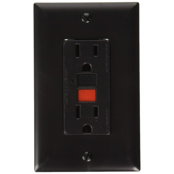 RV Designer S807, Dual Outlet GFCI with Cover Plate, Black, AC Electrical