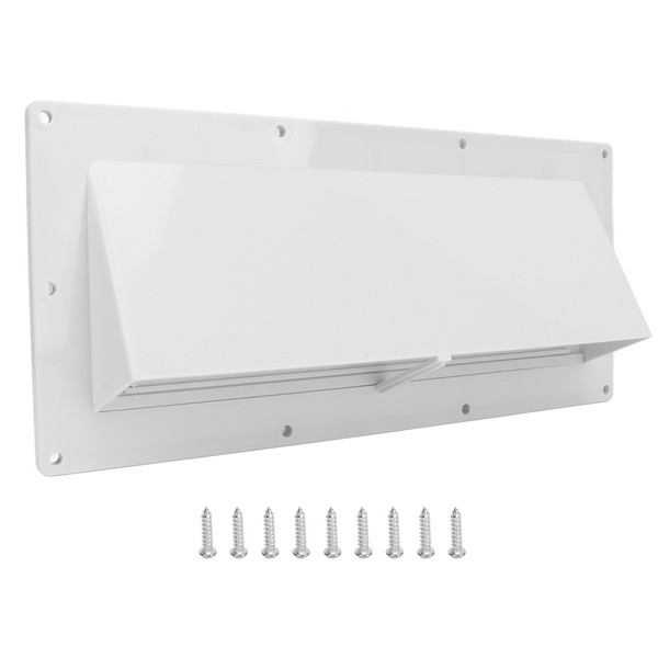 1、Efficient Ventilation: This RV exhaust vent cover provides efficient ventilation for your trailer or camper, allowing for proper air circulation and reducing heat buildup in your living space. 2、Secure Lockable Clips: Equipped with lockable clips, this vent cover ensures a secure and tight fit, preventing it from accidentally opening during transit. 3、Durable: Made from ABS materials, built to withstand harsh weather conditions, UV exposure, and other outdoor elements, ensuring long lasting durability and reliable performance. 4、Sleek and Attractive: With its white color and sleek design, this range hood sidewall vent cover adds a clean and polished look to your RV's exterior, enhancing its overall aesthetic appeal. 5、Easy Installation: Designed to fit a 3‑1/2‑10‑3/8inch cut out size, easy to install and requires minimal tools or expertise. Simply replace your existing vent cover with this one for instant improvement.