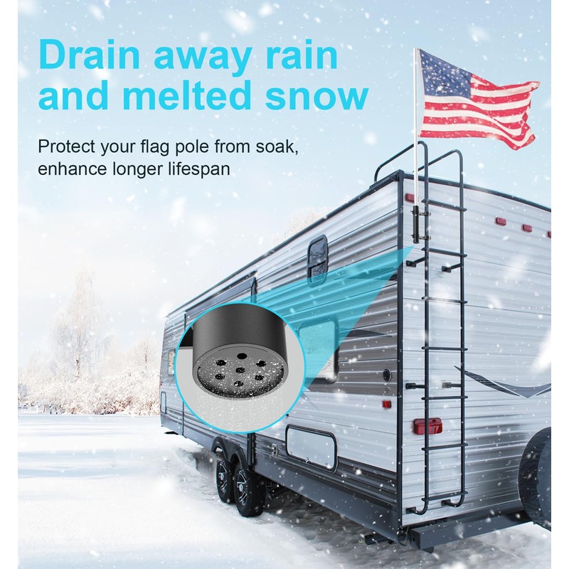- 【Sturdy Construction】Thick aluminum features full weld points, our RV flag holder can withstand harsh weather conditions. Drain holes prevent ice/snow buildup.