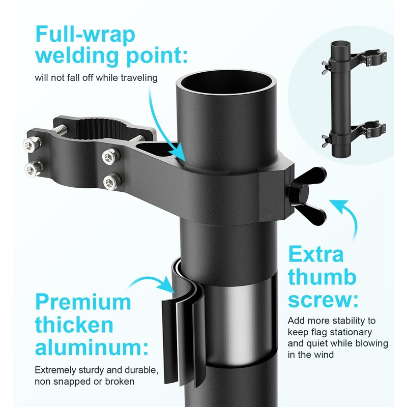 - 【Silent & Stable】Dual thumb screws + rubber pads eliminate rattling on road trip. Compare to other single thumb screw flag holder, it will creates secure foundation to remain stable and quiet while stars and stripes blowing in the wind.