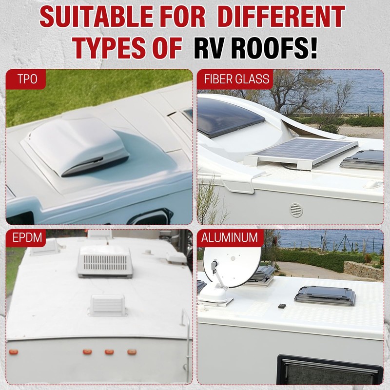 - FLEXIBLE RV ROOF SEALANT: Ultra strong and flexible, It will stretch and stay flexible without shrinking. This sealant has high elongation and stable to resist cracking, peeling, stopping the sun from degrading your roof, the absolute good way to fix your RV leaking roof.