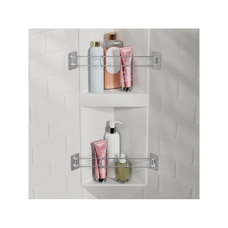 RV Shower Corner Storage Bar, 7.5-13.4 inches RV Bathroom Travel Trailer Storage Organization Coner Bar, Stainless Steel RV Shower Corner Shelf Rod in Camper Must Haves Accessories (2 Pack)