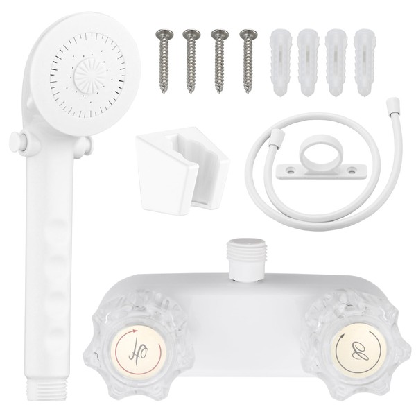 RV Shower Faucet - 4" ABS Shower Valve Diverter with Handheld Head & Hose, Leak & Rust Resistant for RV/Camper/Motorhome (White, Indoor/Outdoor Use)