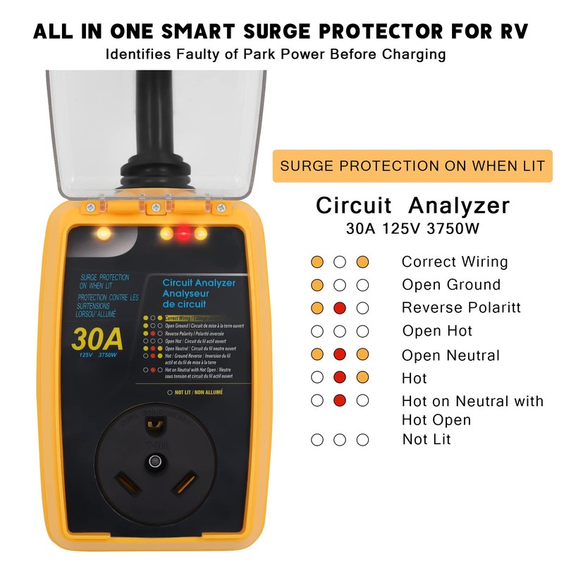 rv Surge Protector 30 Amp Smart RV Surge Protector with Waterproof Cover All-in-1 Circuit Analyzer Power Guard for RV, Camper, Trailer, Truck, Motorboat, Yacht, Mobilhome