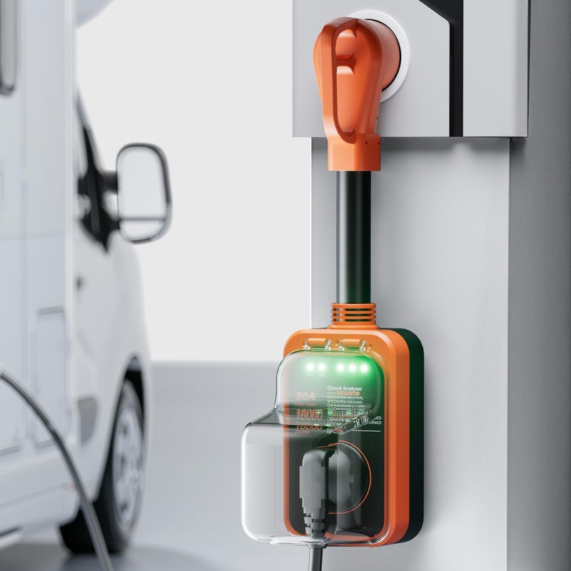 RV Surge Protector 50 Amp, 16000J Surge Protection RV Circuit Analyzer, Automatic Protect RV Electrical System with Waterproof Cover, RV Plug Electrical Adapter Protector for Camping, Travel Trailers