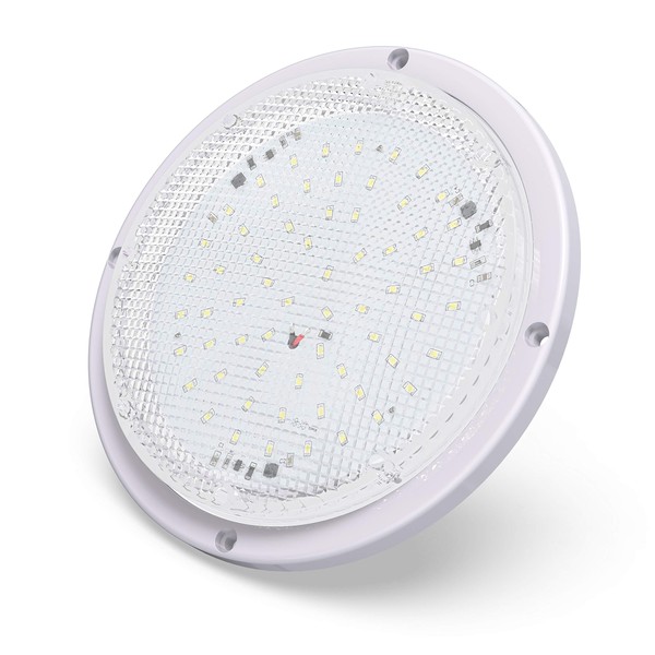 RV Trailer Camper 5th Wheel White 8.5" Round Scare Porch 12V LED Light 600 LM Light Only (LED Light)