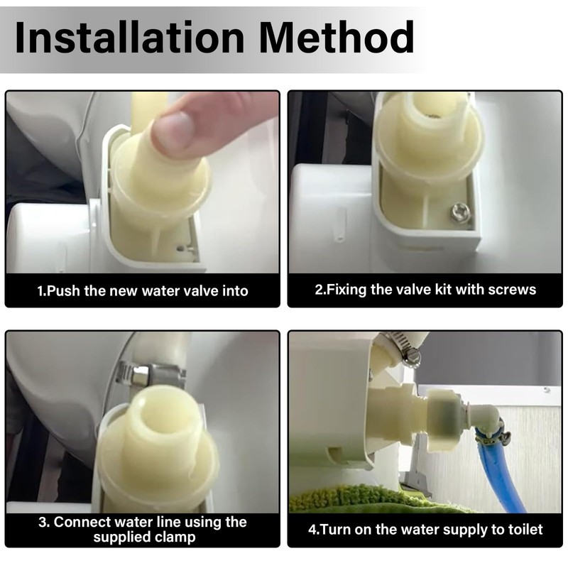 - [Easy Installation]: This rv toilet water is easy to install within minutes. You may need some simple tools for help. Just place the water valve and tighten it by the included fixing kit until fixed. The valve can be easily disassembled without damaging your toilet or water pipe after installation.