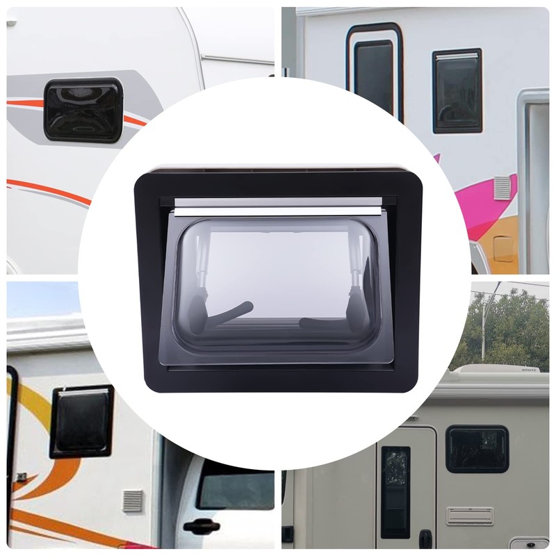 - High-quality Material ☄ This RV exit window is made of high-quality aluminum alloy and ABS frame, acrylic, aluminum film, and non-woven sunshade, and nylon mesh, which is sturdy and durable. The electrostatic spraying process makes the black frame well-resistant to corrosion and abrasion, prolonging its service life.