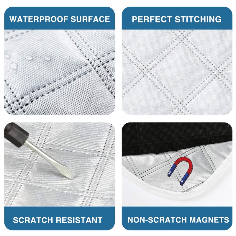 • There are sewn-in door pockets and strong magnets that hold the cover securely in place