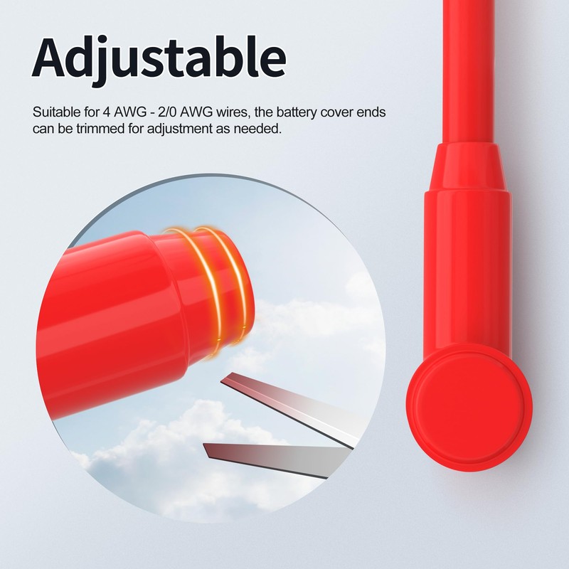 - Durable: The silicone battery terminal cover exhibits excellent toughness, capable of accommodating thick wires without tearing easily. In addition, it provides high temperature resistance and can withstand voltages up to 2000V