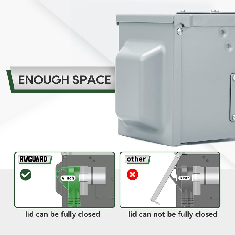 • Enough Space: There is enough space to close the lid while plugging in the cord even with a big handle. You can also adjust the box lid open position while installing the panel and connecting the power cord.